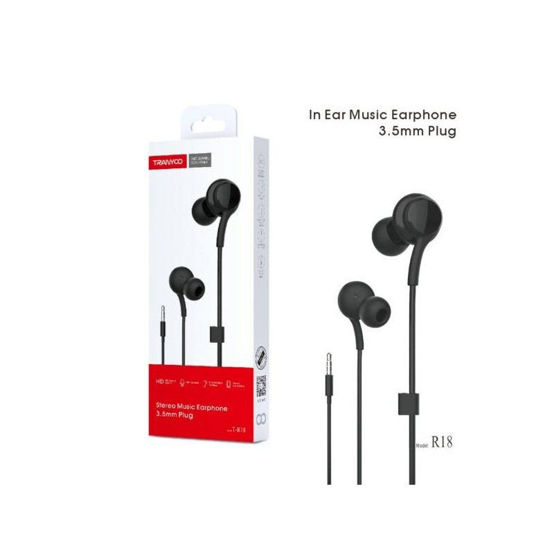 - Ενσύρματα Ακουστικά In-Ear TRANYOO R18 με Βύσμα 3.5mm – Μαύρα