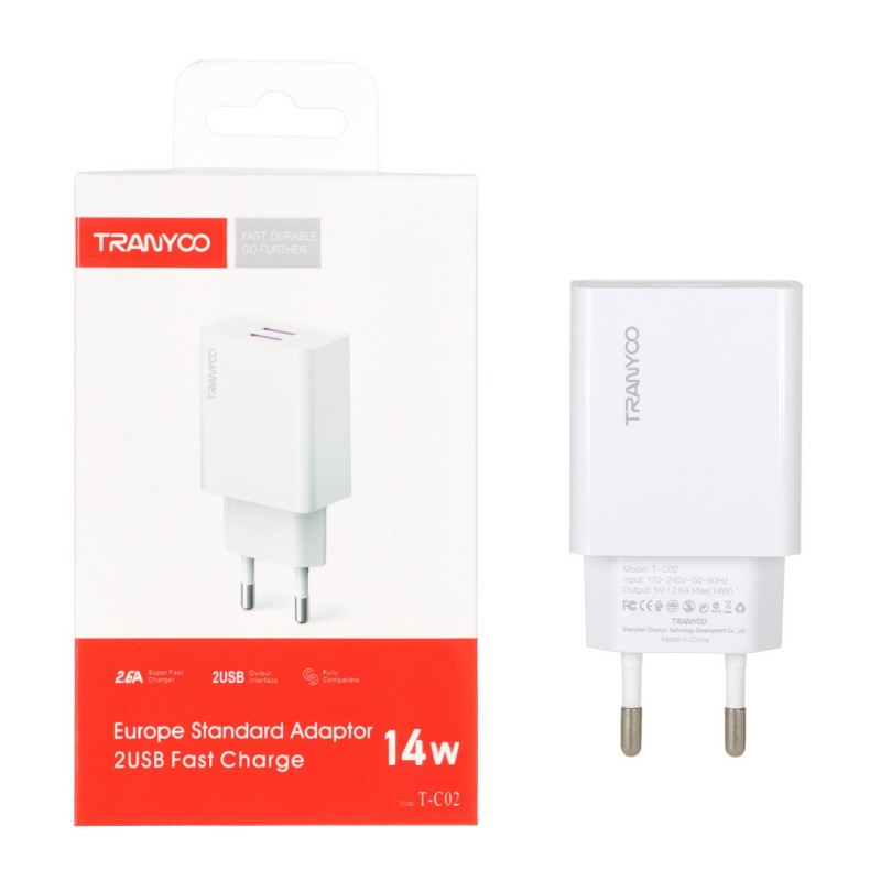 - TRANYOO 14W EU Φορτιστής με Θύρες 2 USB TC02